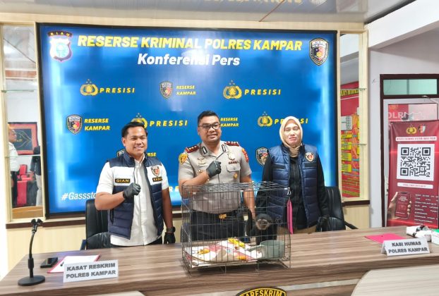 Bangkinang – Polres Kampar menunjukkan komitmennya dalam memberantas peredaran satwa dilindungi dengan menangkap seorang pelaku yang memperjualbelikan Owa Ungko (Hylobates Agilis), Senin (26/01/2026). Pelaku berinisial DE (30), warga Desa Salo, Kecamatan Salo, ditangkap saat hendak melakukan transaksi jual beli satwa langka tersebut. Kapolres Kampar AKBP Boby Putra Ramadhan S, didampingi Kasat Reskrim AKP Gian Wiatma […]
