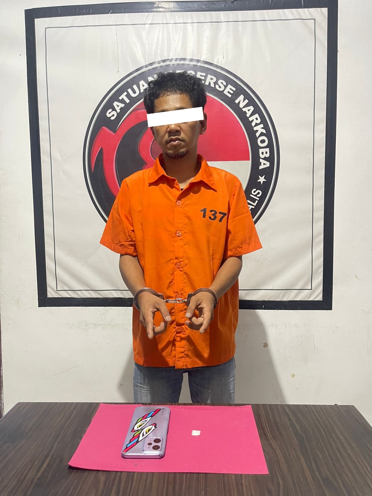 Sekitar pukul 17.12 WIB, petugas mencurigai seorang pria dengan gerak-gerik tidak wajar. Saat diamankan dan dilakukan penggeledahan, polisi menemukan 1 paket kecil diduga sabu dengan berat kotor 0,19 gram serta 1 unit handphone Android yang diduga digunakan untuk berkomunikasi dalam transaksi.