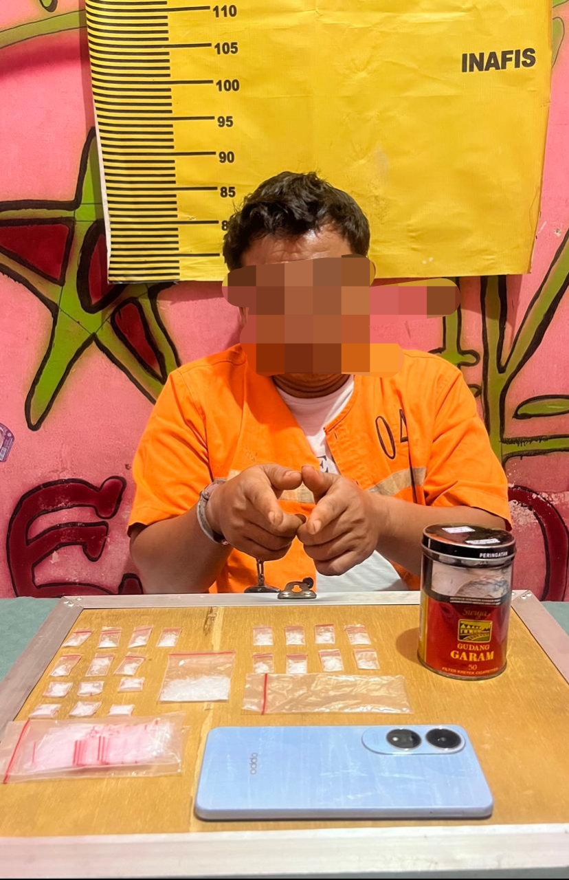Saat tiba di lokasi, petugas menemukan seorang pria dengan gerak-gerik mencurigakan. Setelah diamankan dan dilakukan penggeledahan, ditemukan satu paket kecil sabu. Petugas kemudian melakukan pengembangan ke rumah pelaku dan kembali menemukan sejumlah paket sabu lainnya yang siap edar.