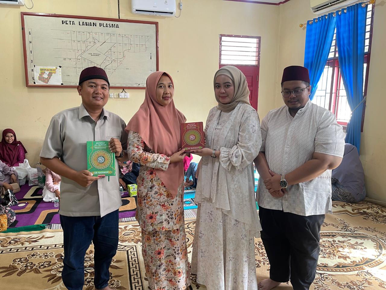 Ketua TP PKK Sekaligus Direktur PT RIM Syam Gold,Rifka Zahera,S.Sos.MM Di Dampingi Camat Tapung Hilir Nuansyah. S.STP. MM Menyerahkan Hibah 140 Mushaf Al-Qur’an Kepada Desa Kota Bangun