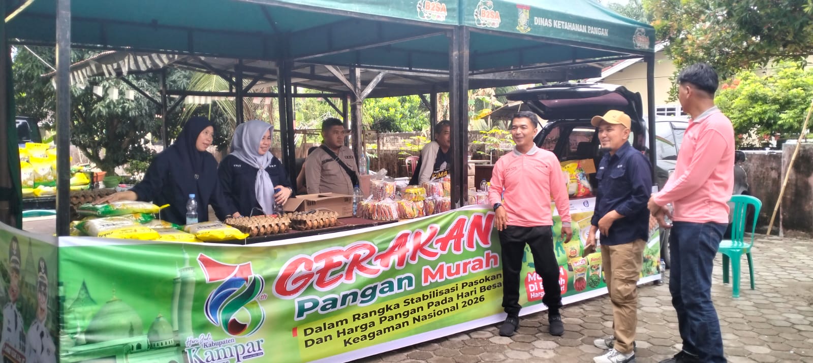 Kampar Kiri — Pemerintah Kabupaten Kampar melalui Dinas Ketahanan Pangan kembali menggelar Gerakan Pangan Murah, kali ini berlokasi di Halaman Kantor Lurah Lipat Kain Kecamatan Kampar Kiri. Kegiatan ini mendapat sambutan hangat dari masyarakat yang memanfaatkan kesempatan untuk memperoleh pangan pokok dengan harga lebih terjangkau. (09/04/2026).