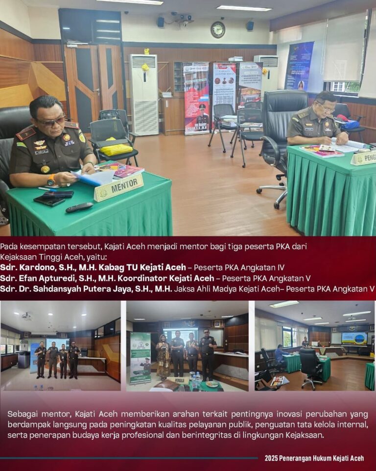Pada kesempatan tersebut, Kajati Aceh menjadi mentor bagi tiga peserta PKA dari Kejaksaan Tinggi Aceh, yaitu: