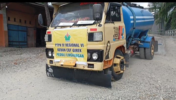 Aceh Utara – PTPN IV Regional 6 Kebun Cot Girek peduli lingkungan dengan menurunkan mobil tangki air untuk membersihkan debu dengan cara menyiram jalan lintas pada hari selasa (31/03/2026).