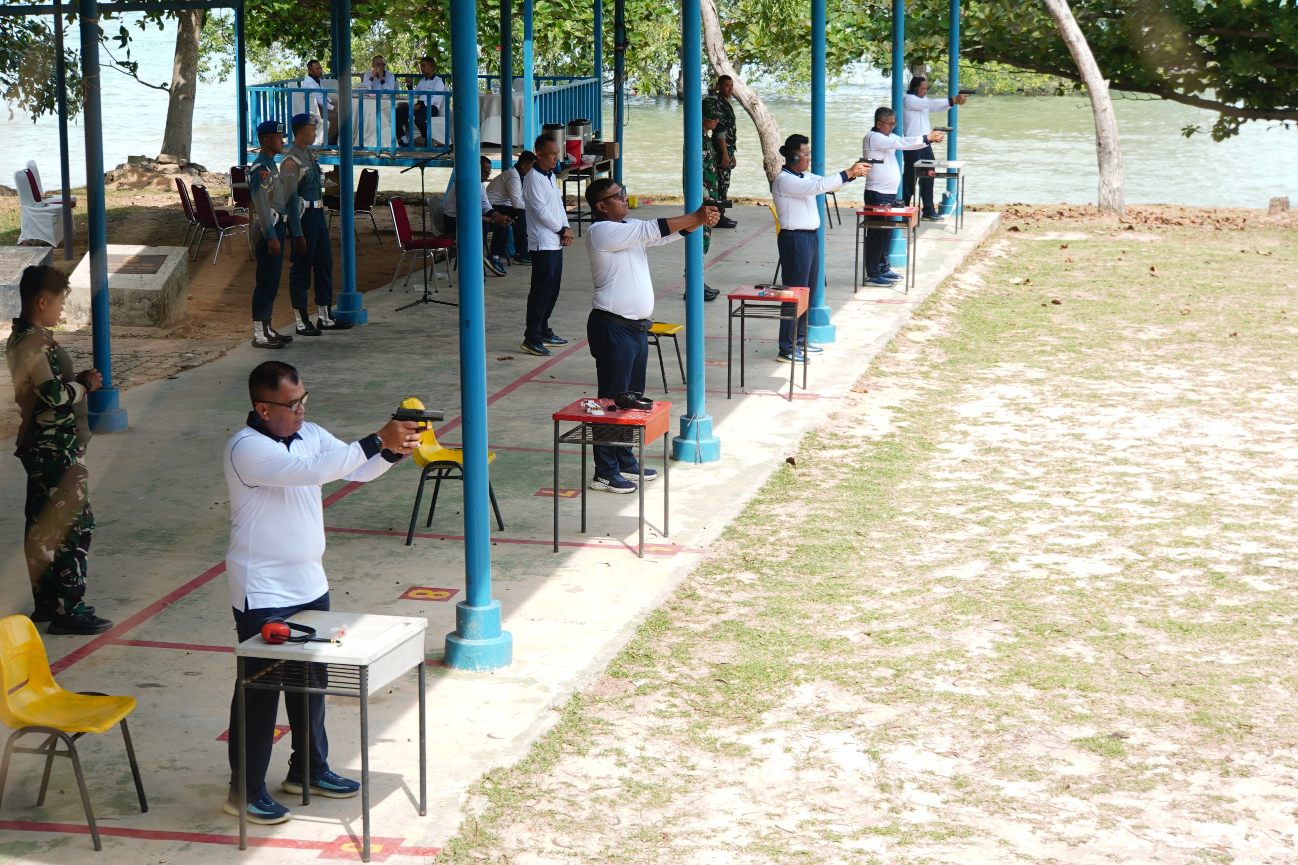 Kegiatan latihan menembak yang merupakan bagian dari pembinaan kemampuan dasar keprajuritan, guna meningkatkan profesionalisme serta kesiapsiagaan prajurit dalam mendukung tugas pokok TNI Angkatan Laut dipimpin oleh Komandan Kodaeral IV Laksda TNI Berkat Widjanarko, S.E., M.Tr.Opsla. didampingi Wadan Kodaeral IV Laksma TNI Ketut Budiantara, S.E., M.Han.